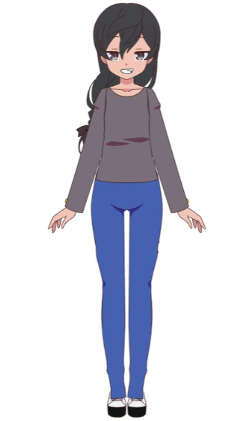 She had big grey eyes, long black hair tied back in a messy ponytail, she wore a plain grey shirt, jeans, and white high tops. Her purpose when she was created was to play with Sabrina, and to keep her company since she didn't have any siblings.